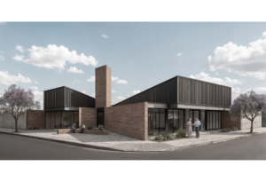 La propuesta arquitectónica toma como referencia el entorno inmediato: el ladrillo visto, característico del barrio Arcor, y la chapa, presente en la tipología industrial del supermercado, se reinterpretan en un lenguaje contemporáneo que otorga identidad, solidez y carácter al conjunto.