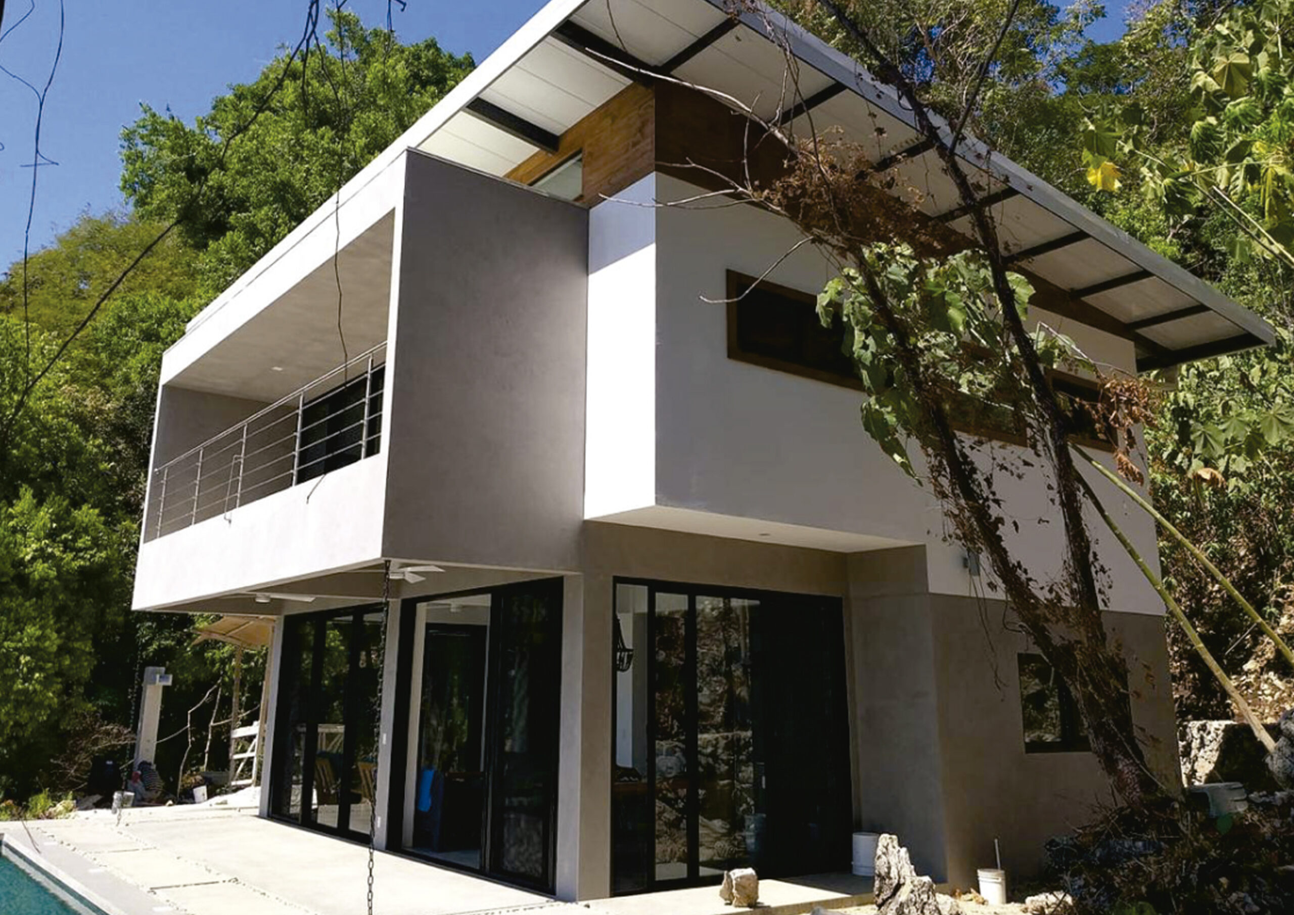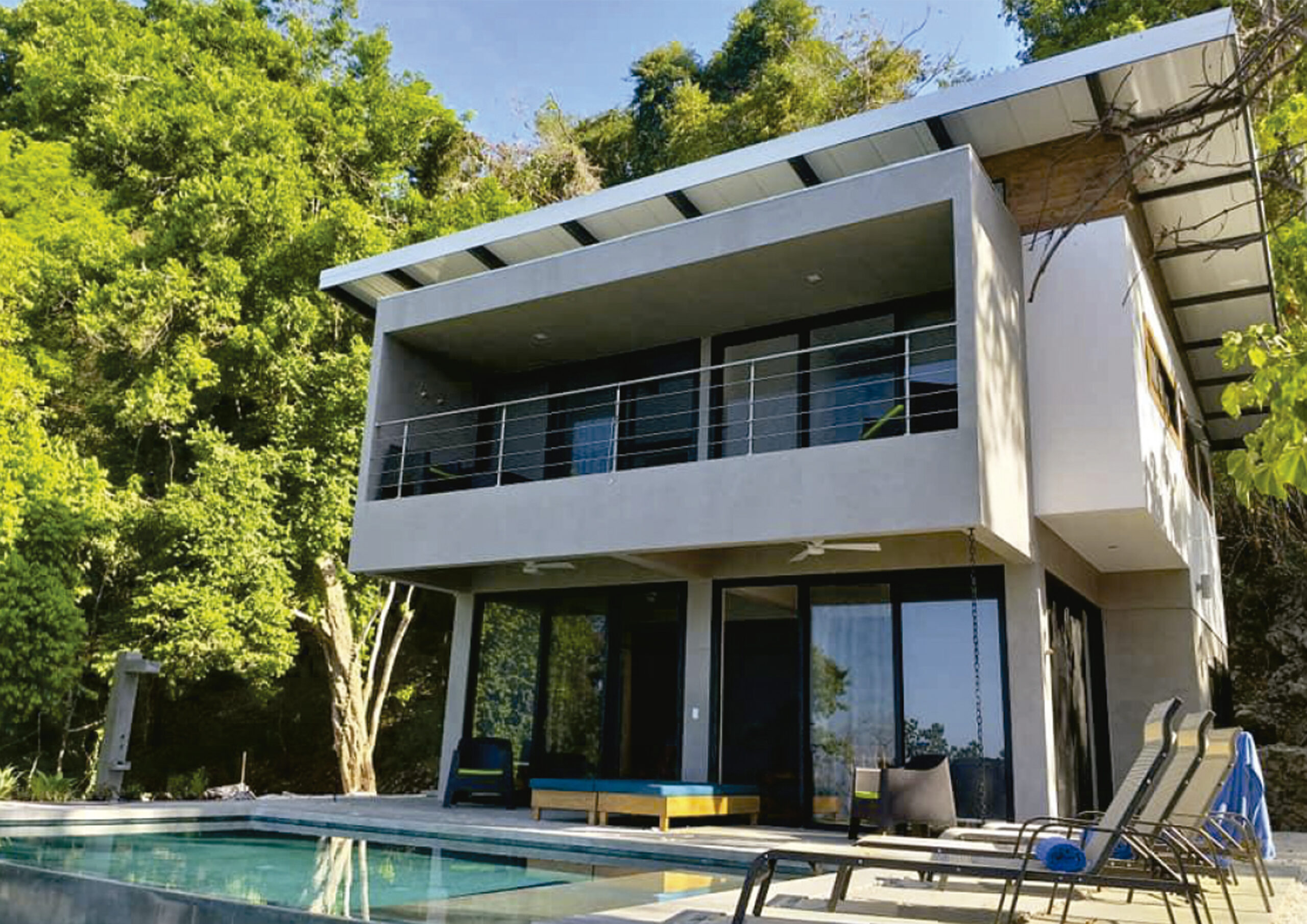 Ubicada en una parcela con excelente vista y ubicación en la selva de Costa Rica. Como premisa principal se plantea acomodar hacia la fachada mas “desfavorable” los servicios para así aprovechar las vistas al máximo con los espacios principales. A la planta baja se ingreza desde un lateral para optimizar circulaciones y evitar pasillos. La planta baja se desarrolla alrededor de una columna de hormigón armado que además de sostener, organiza el espacio en cuadrantes generando además un espacio de gran flexibilidad. En la segunda planta se repite el esquema de servicios hacia atrás para liberar visuales a través de un gran bacón a las habitaciones. Dominando el volumen un gran techo con voladizos hacia todas las orientaciones se encarga de protejer a la construcción de las abundantes lluvias de la zona tropical.