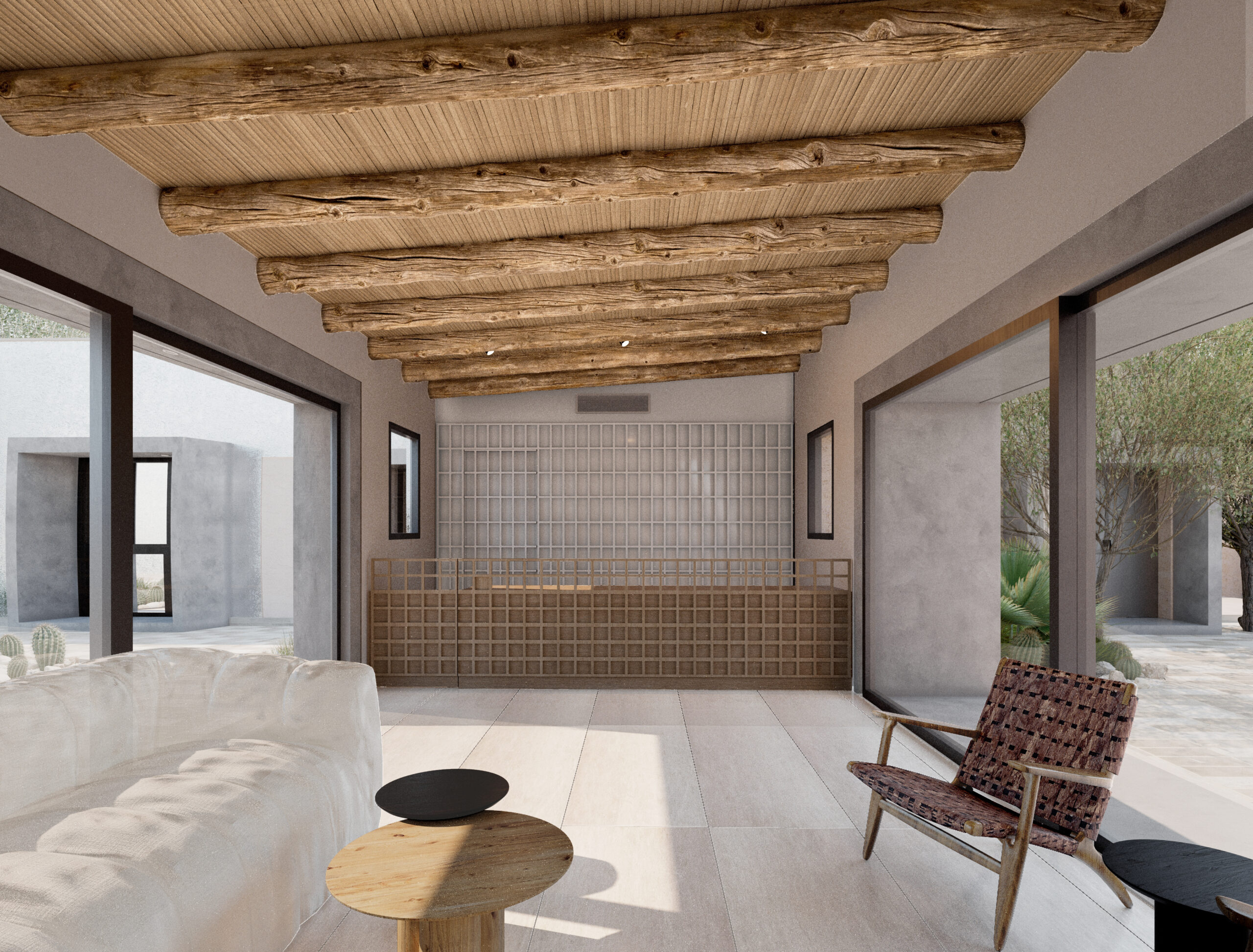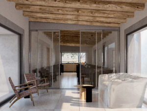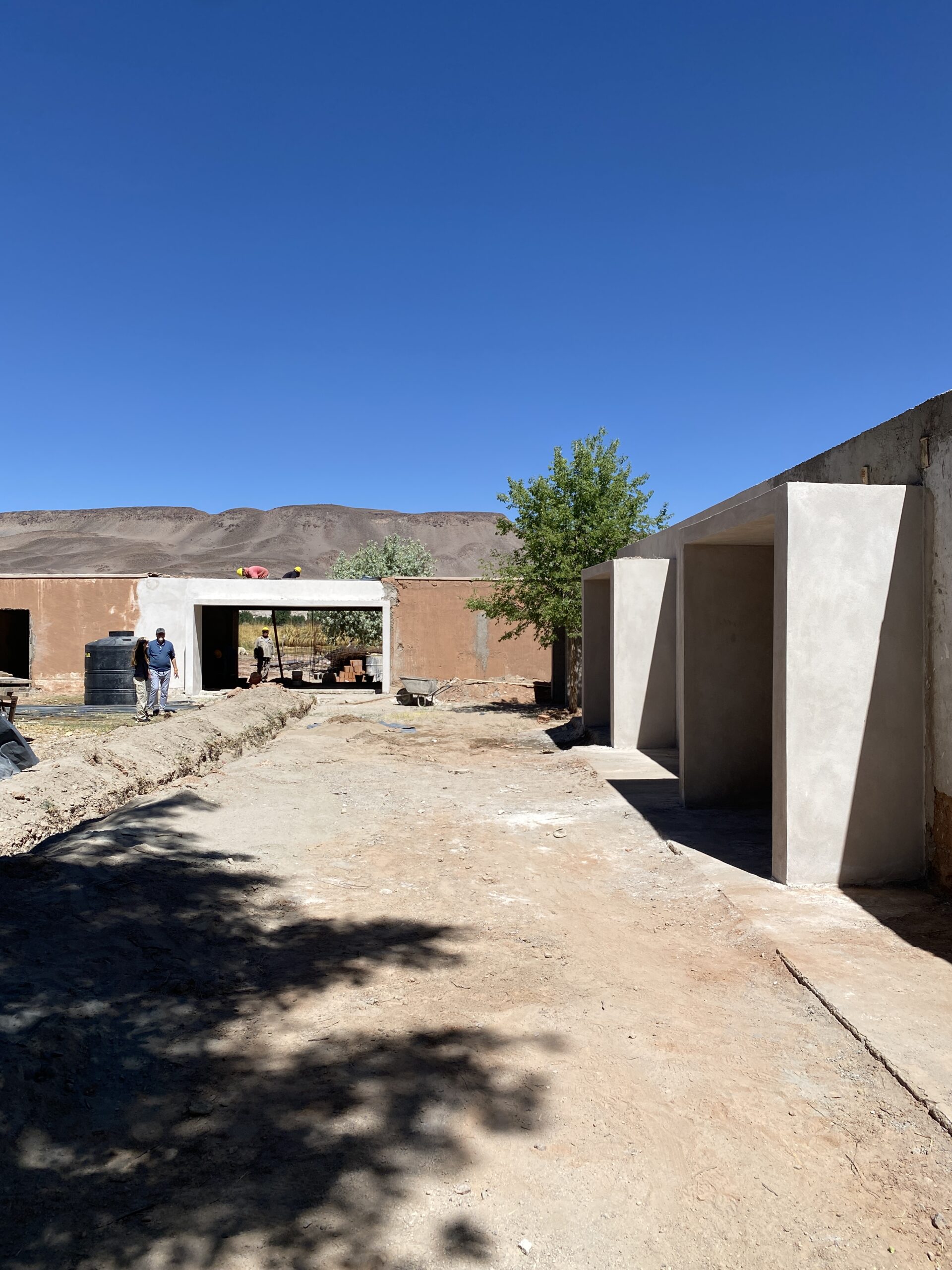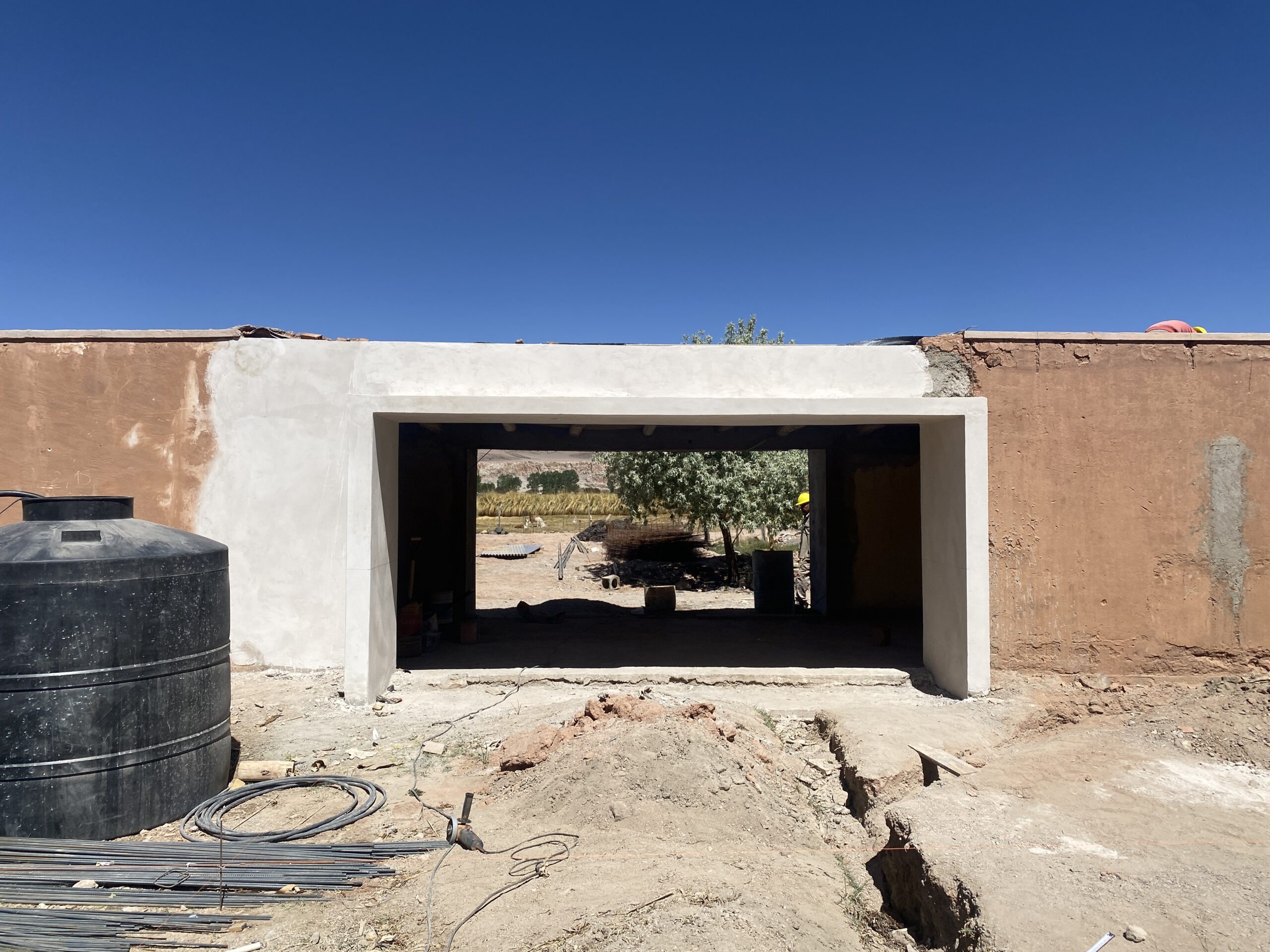 La estrategia proyectual se basa en una masa construida ahuecada de manera controlada, incorporando aperturas mínimas y precisas para garantizar iluminación natural, ventilación y visuales, manteniendo al mismo tiempo un óptimo rendimiento térmico. Para permitir estas operaciones sin comprometer la estabilidad de la construcción original, se desarrolla un sistema de bocas estructurales de hormigón armado, que consolidan los muros de adobe y ordenan los nuevos vacíos.