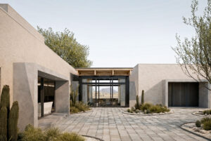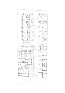 En cuanto a lo tipológico se configuran dos patios interiores tipo claustro, concebidos como oasis protegidos, que organizan el conjunto, mejoran el comportamiento ambiental y estructuran las circulaciones.