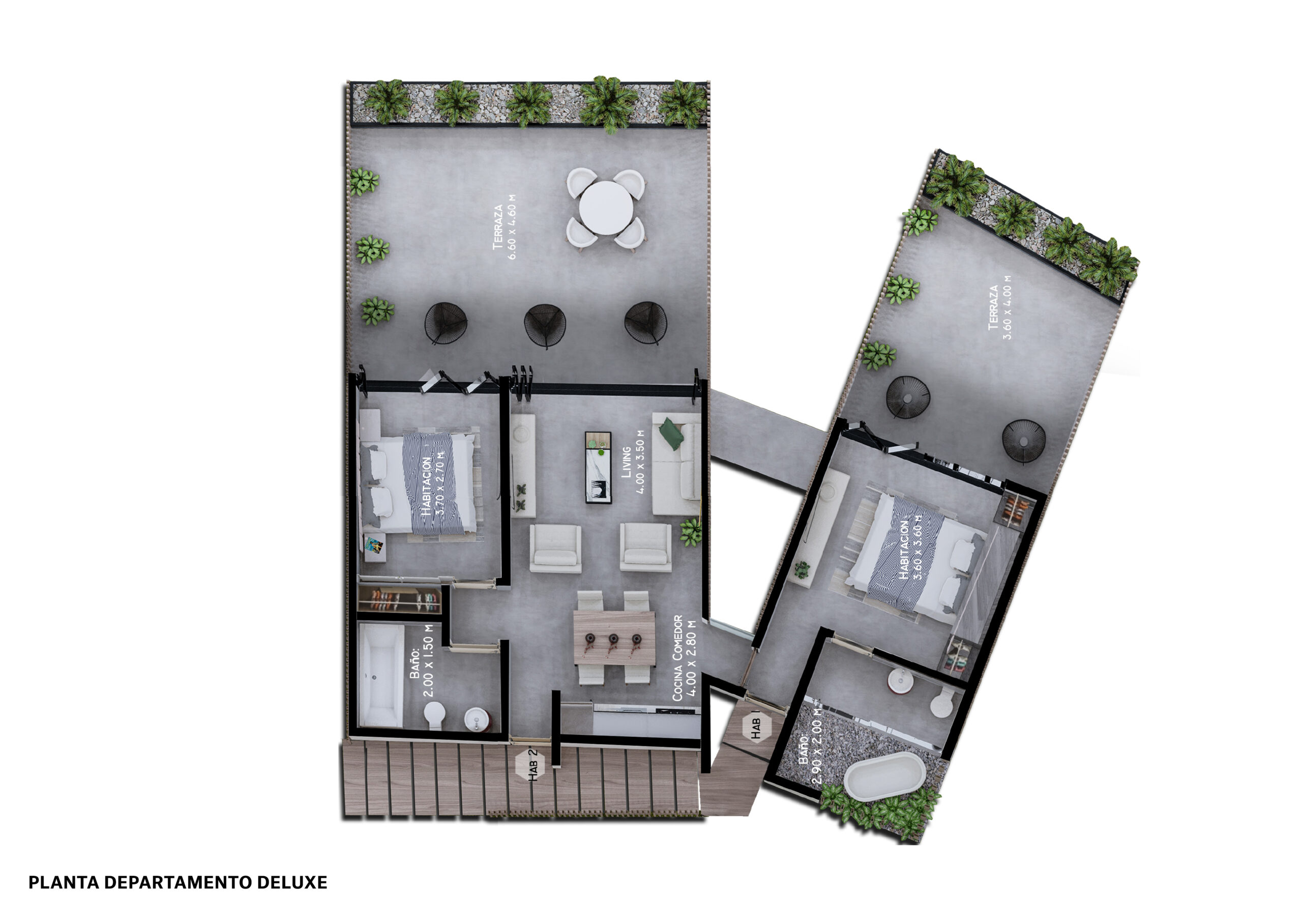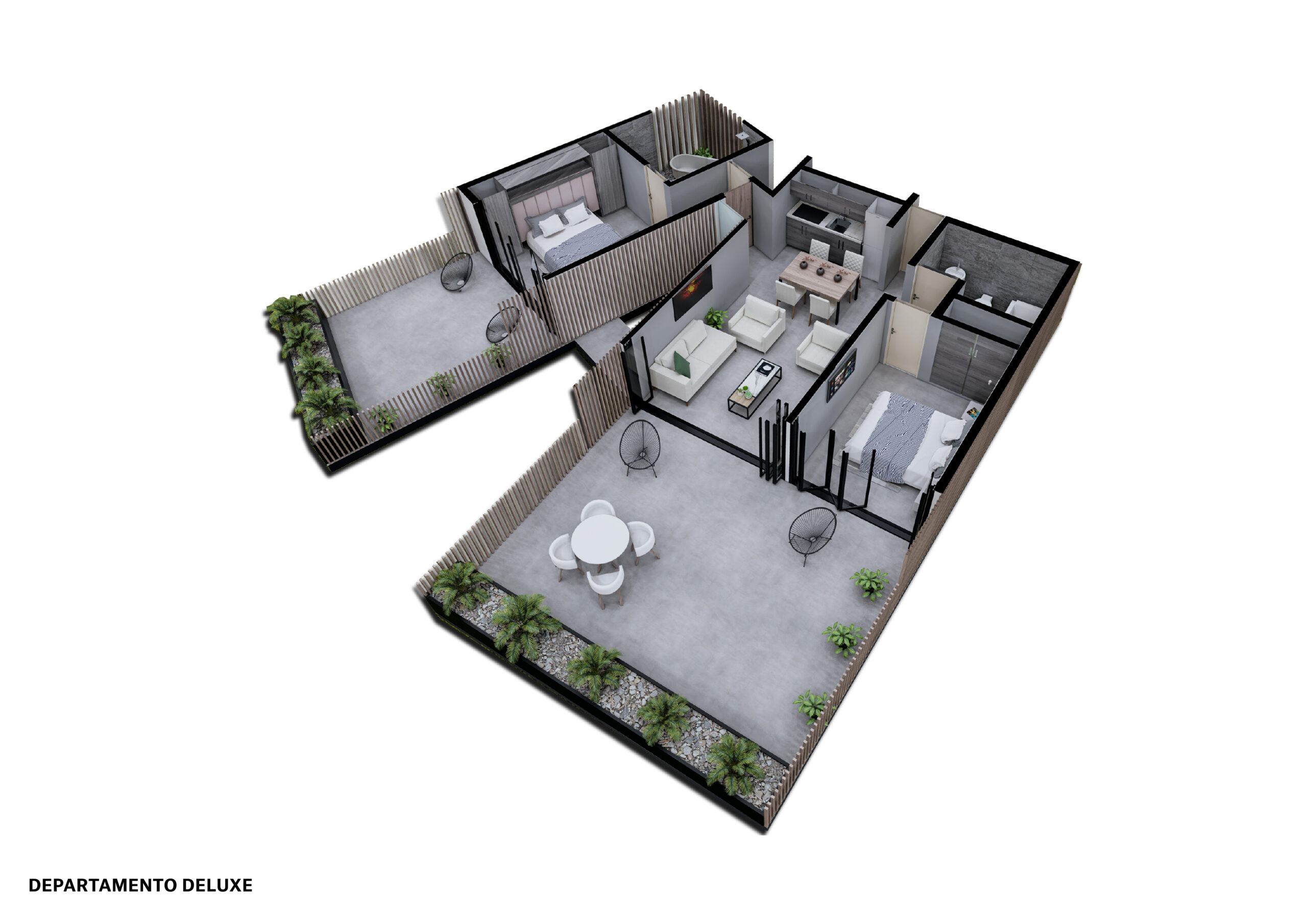La rentabilidad de los departamentos Deluxe se maximiza al ofrecerlos como unidades completas o separadas, gracias a sus accesos diferenciados y conexión mediante un puente.