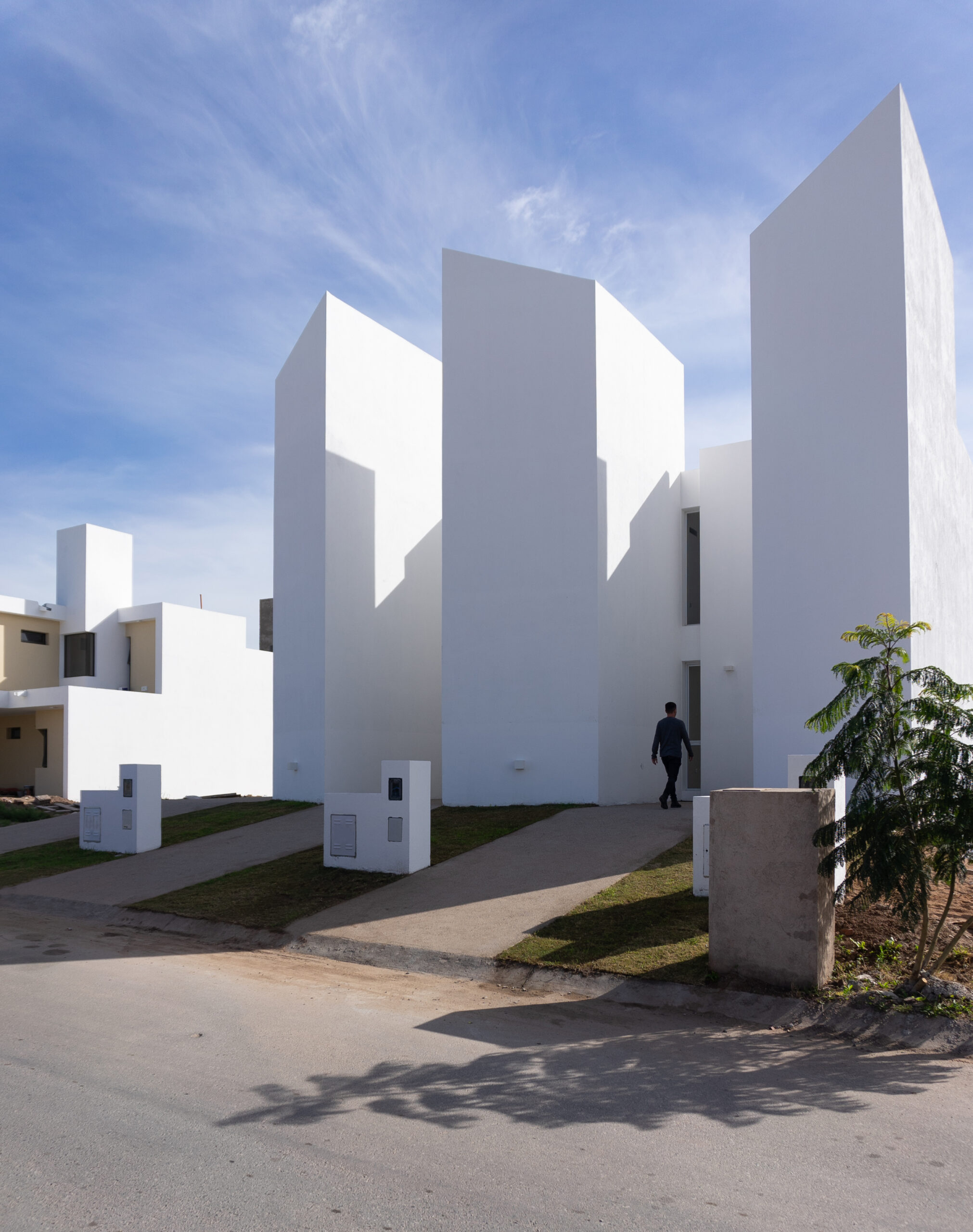 El conjunto TRIPLEX se encuentra ubicado en un nuevo barrio periférico de la ciudad de Córdoba. A donde la presencia de hitos o referencias arquitectónicas son escasas o nulas por lo que se buscó proyectar algo “diferente” a lo habitual en dichos desarrollos y lograr una calidad superadora en lo arquitectónico.